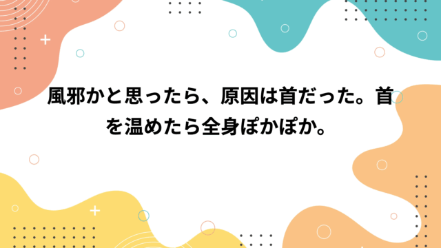 風邪かと思ったら、原因は首だった。首を温めたら全身ぽかぽか。